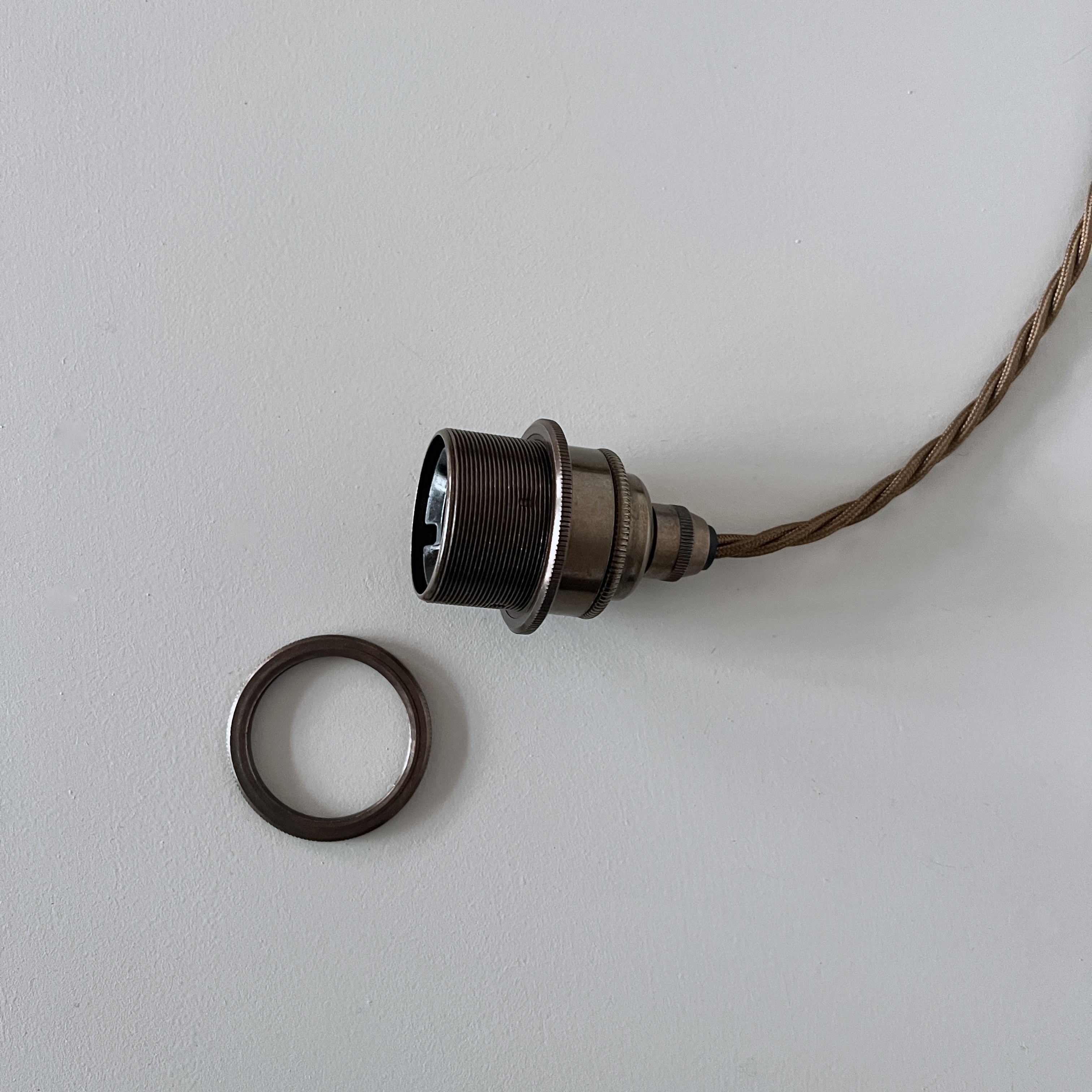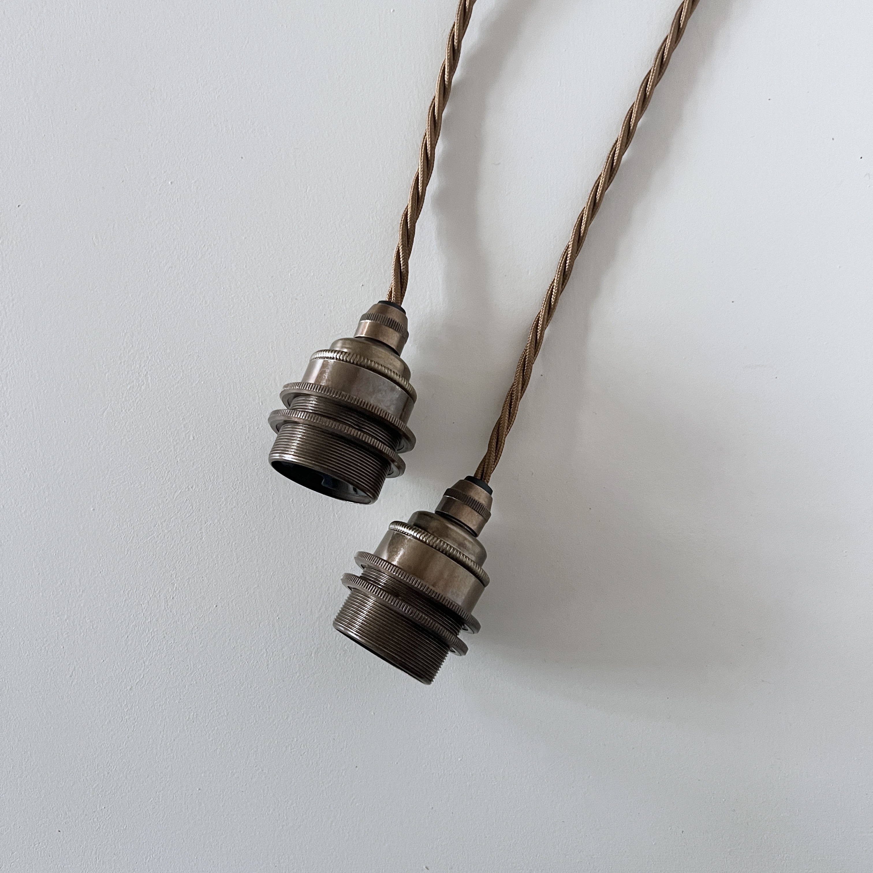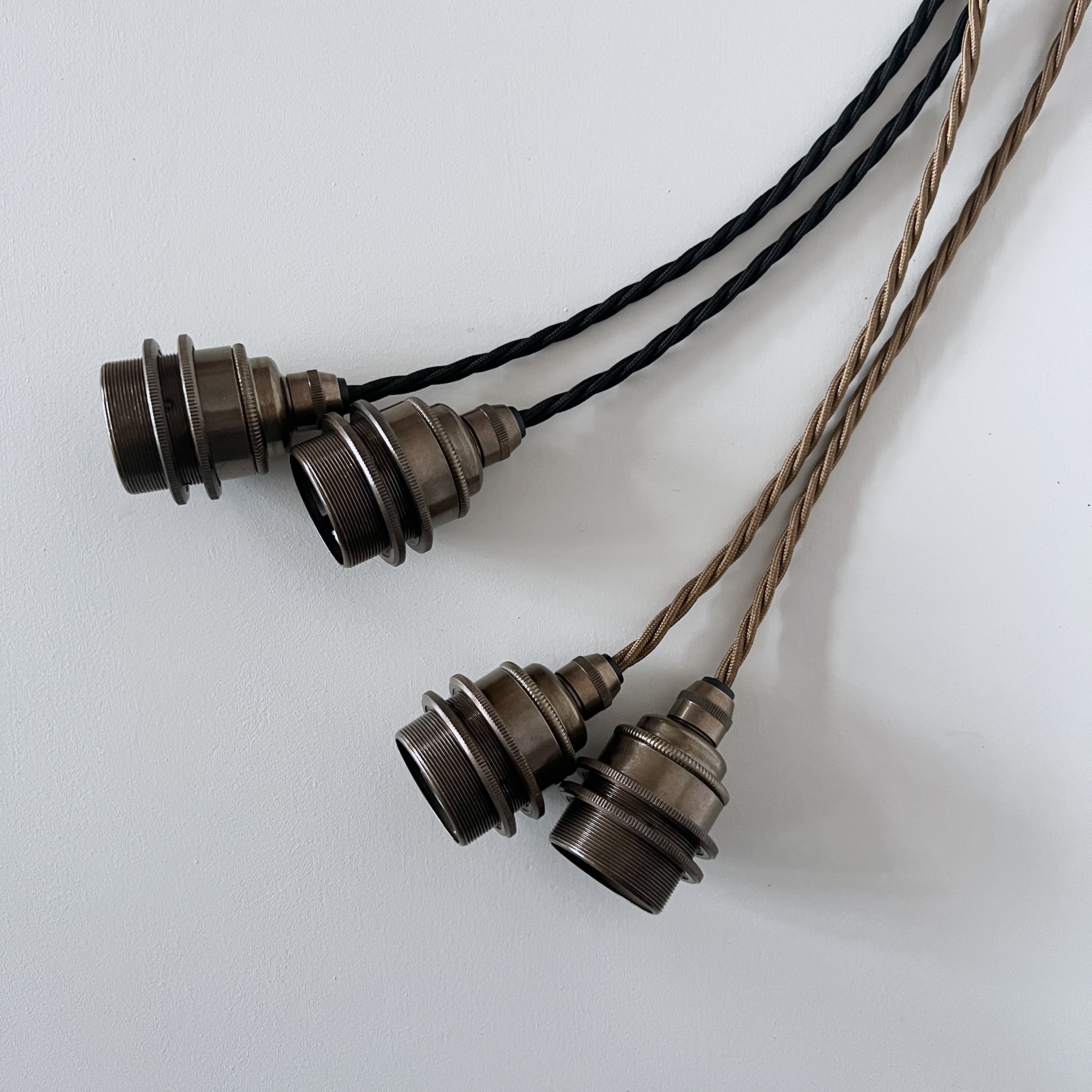 These bespoke braided lamp holders are suitable for adding shades. They can be wired to specified lengths and colour. The price includes one metre of cable but not the bulb. Extra flex £6.00 per metre.