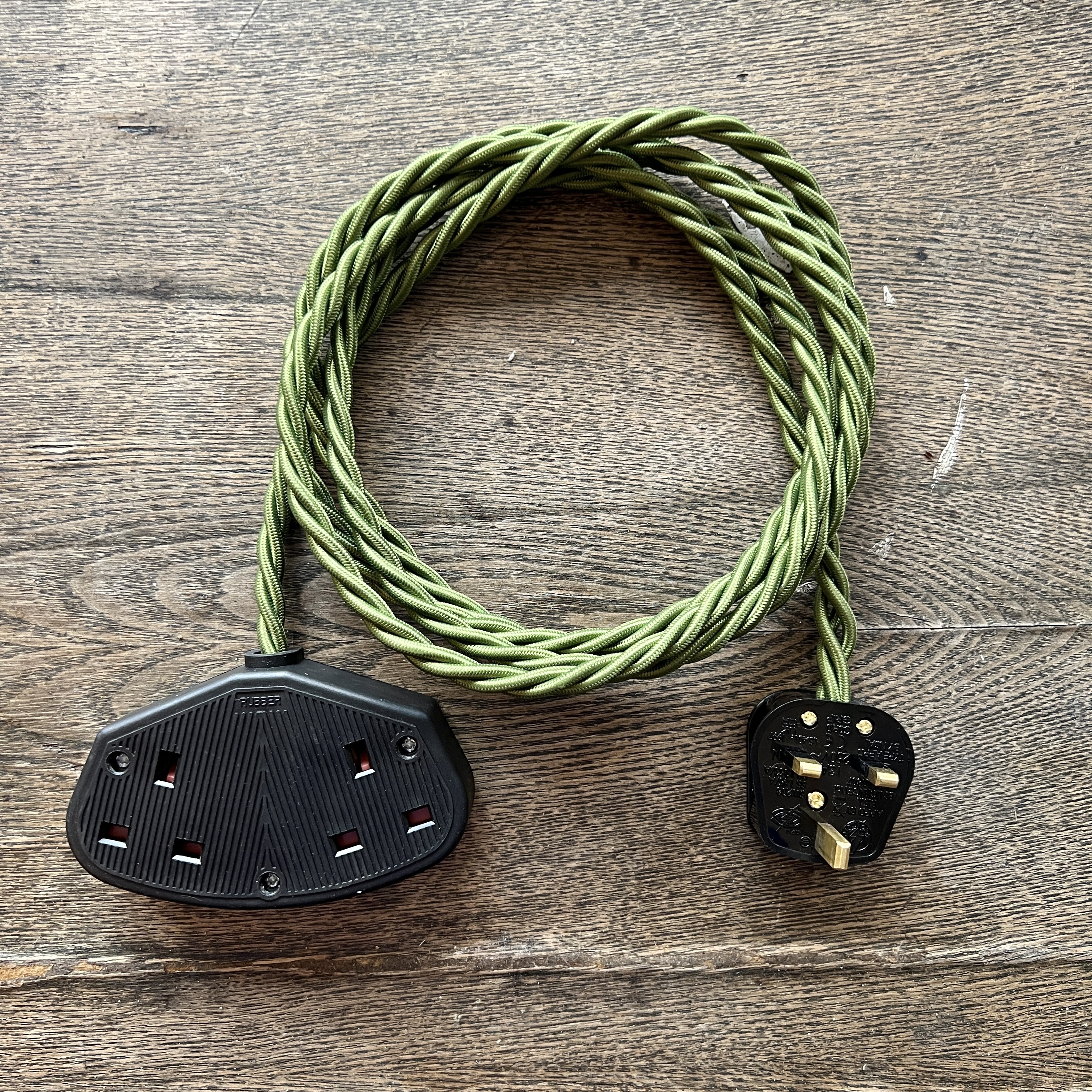 Braided fabric extension leads newly wired with a black socket and a three pin plug. Three core 1.5mm braided cable, choose from: