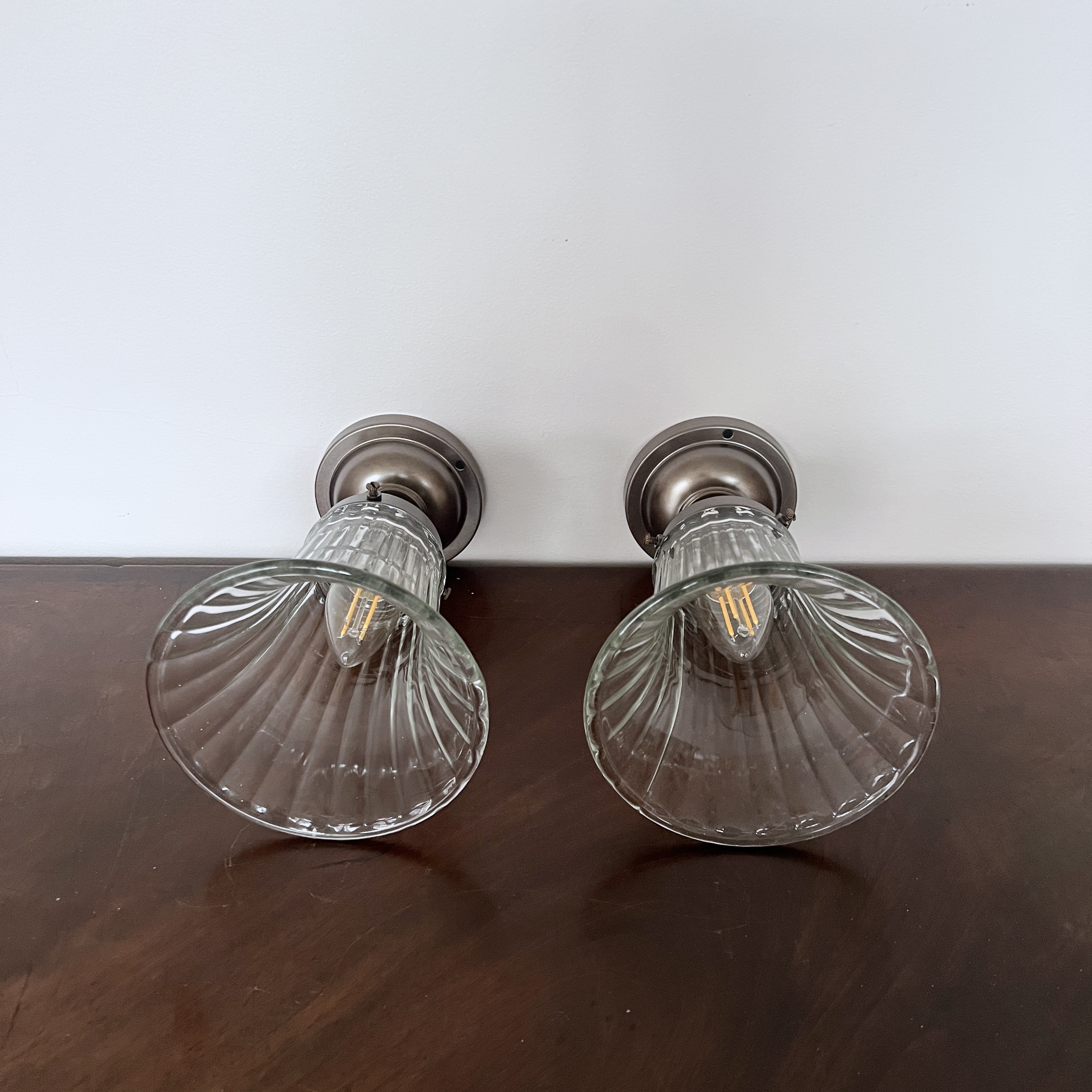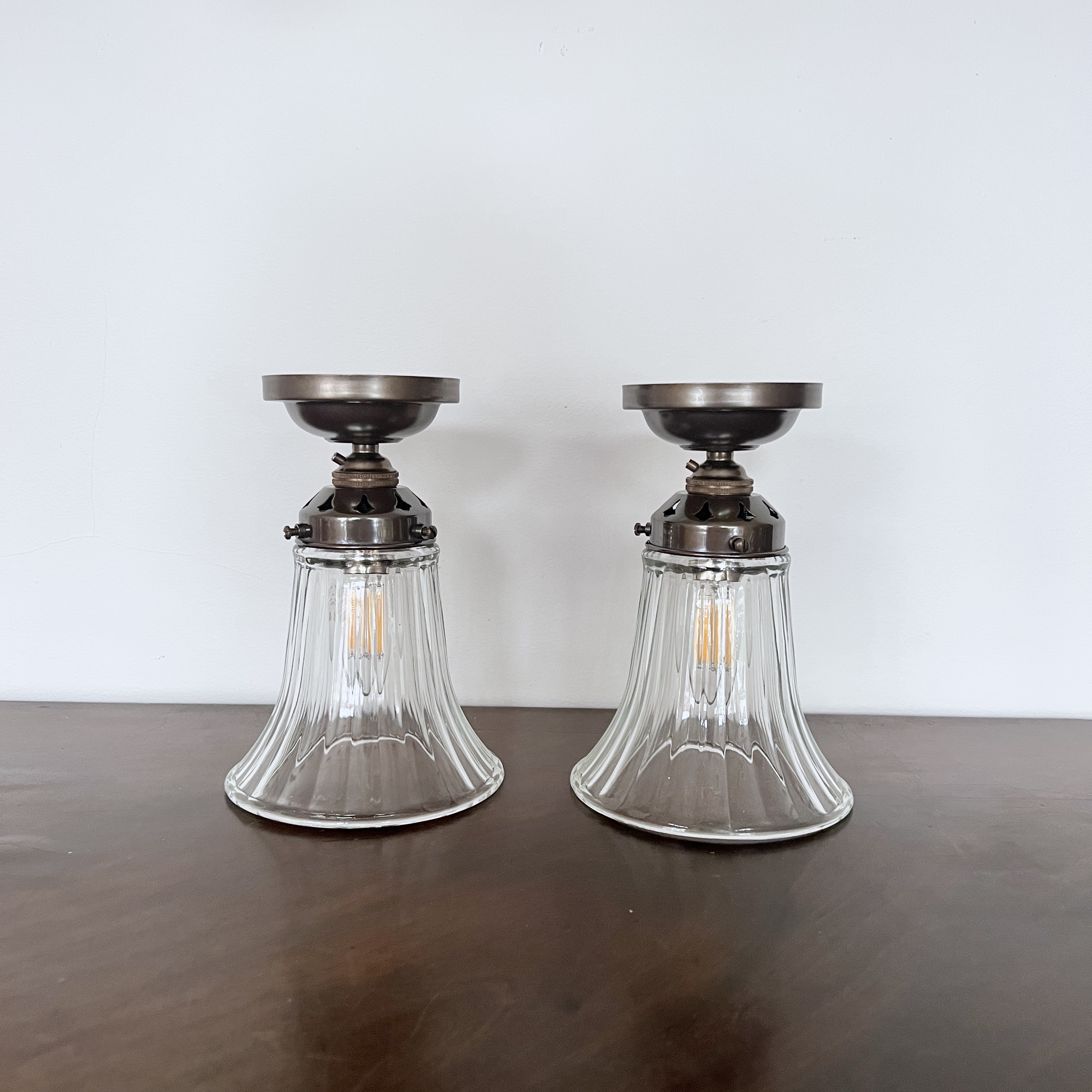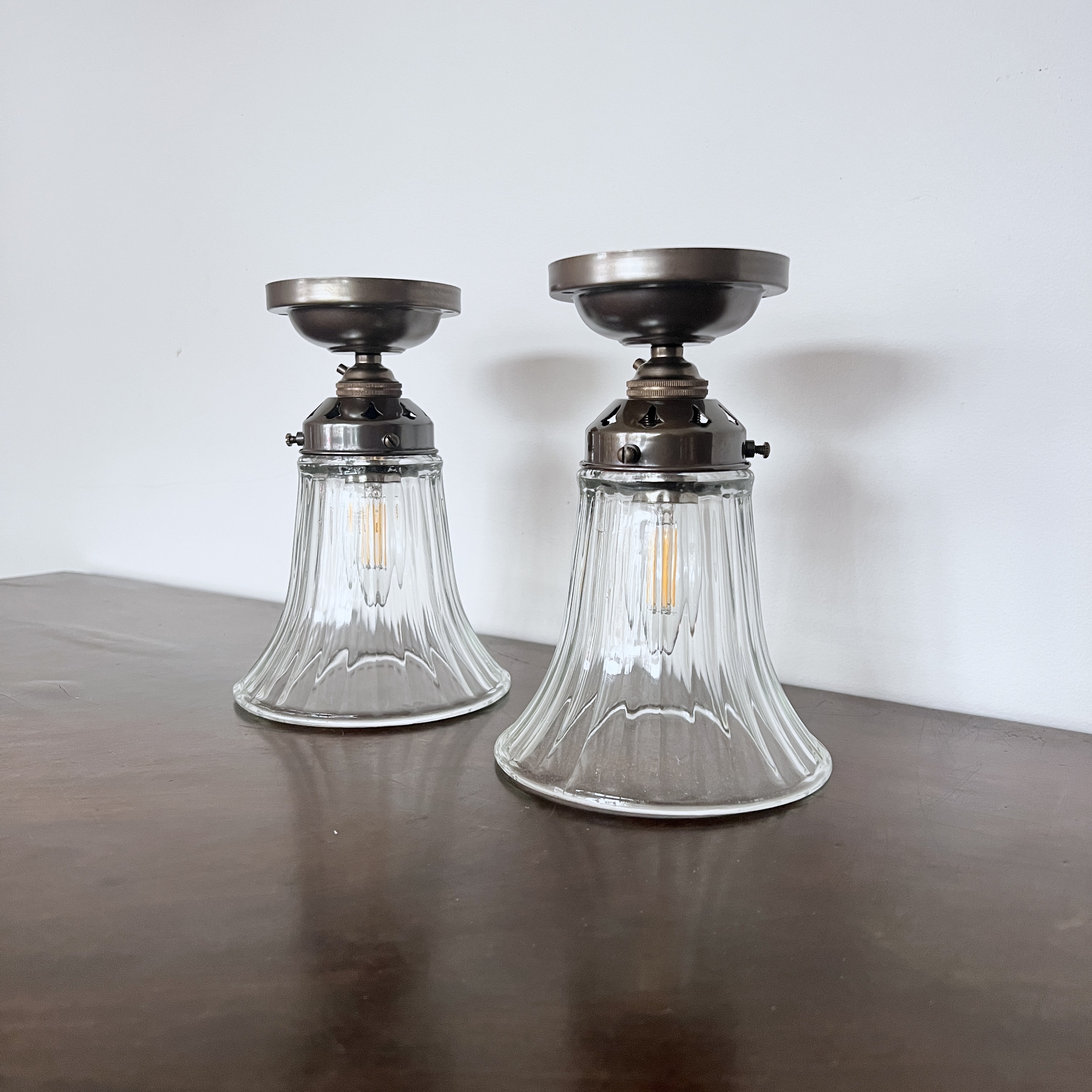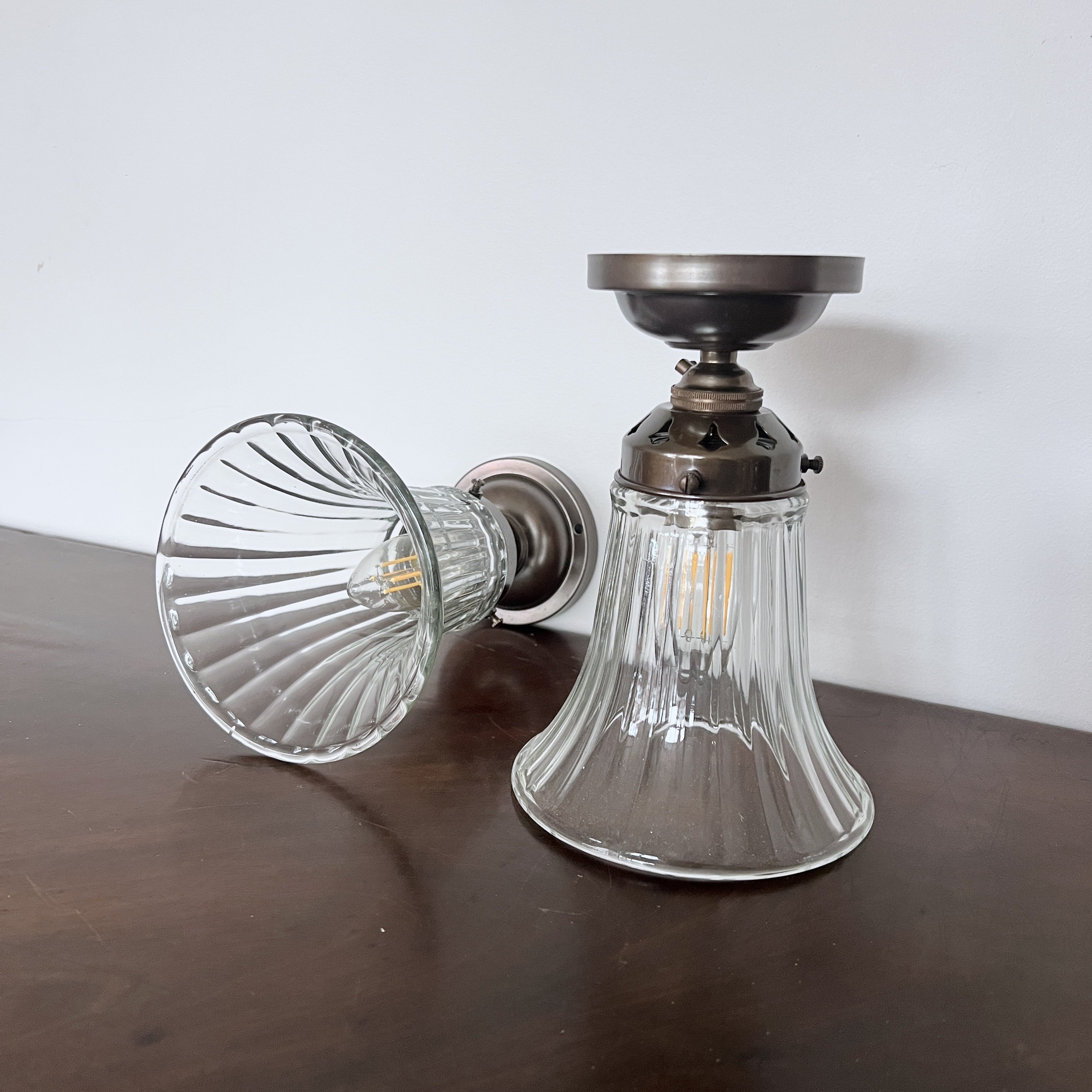 Fluted Clear Glass, Antique Brass Flush Fitting Lights