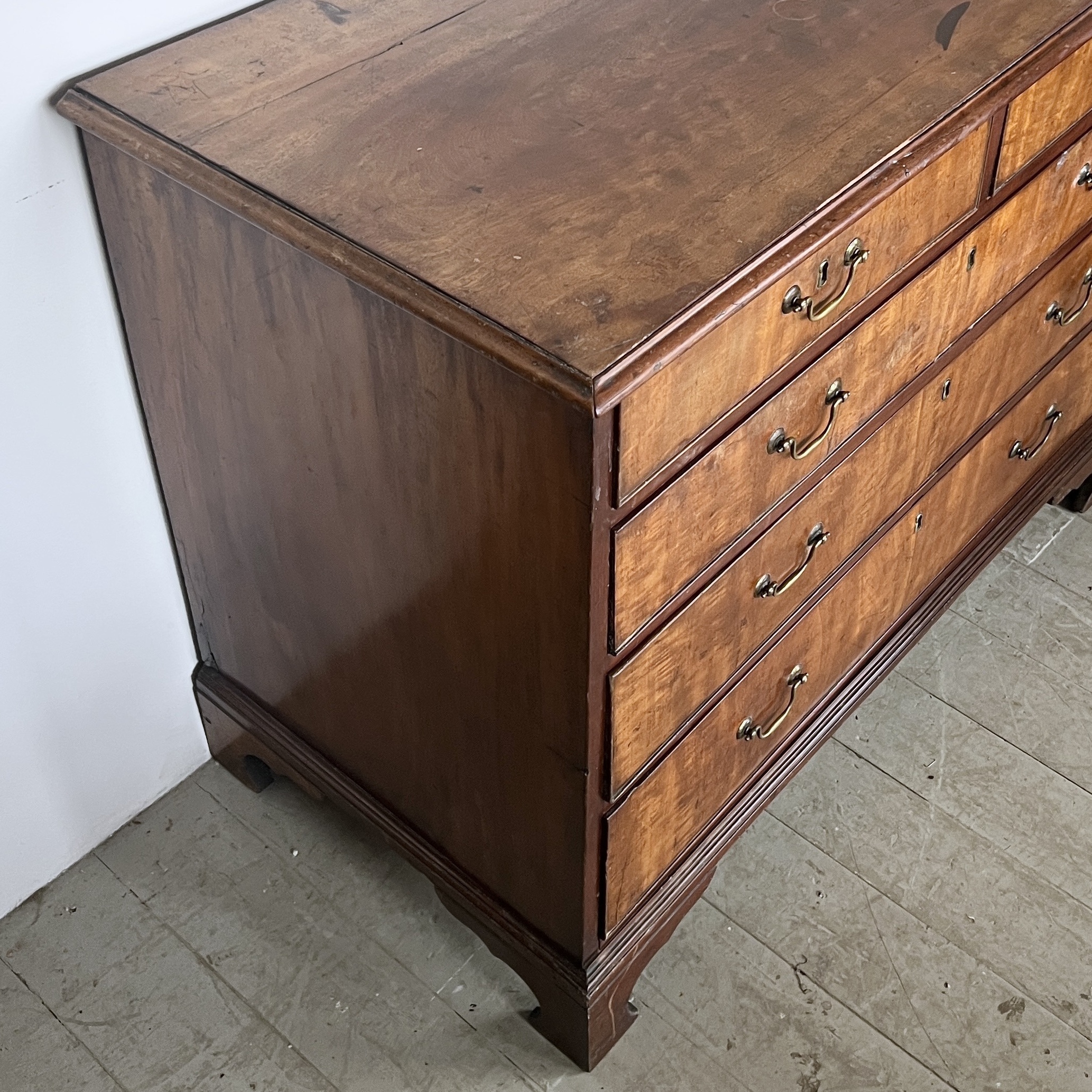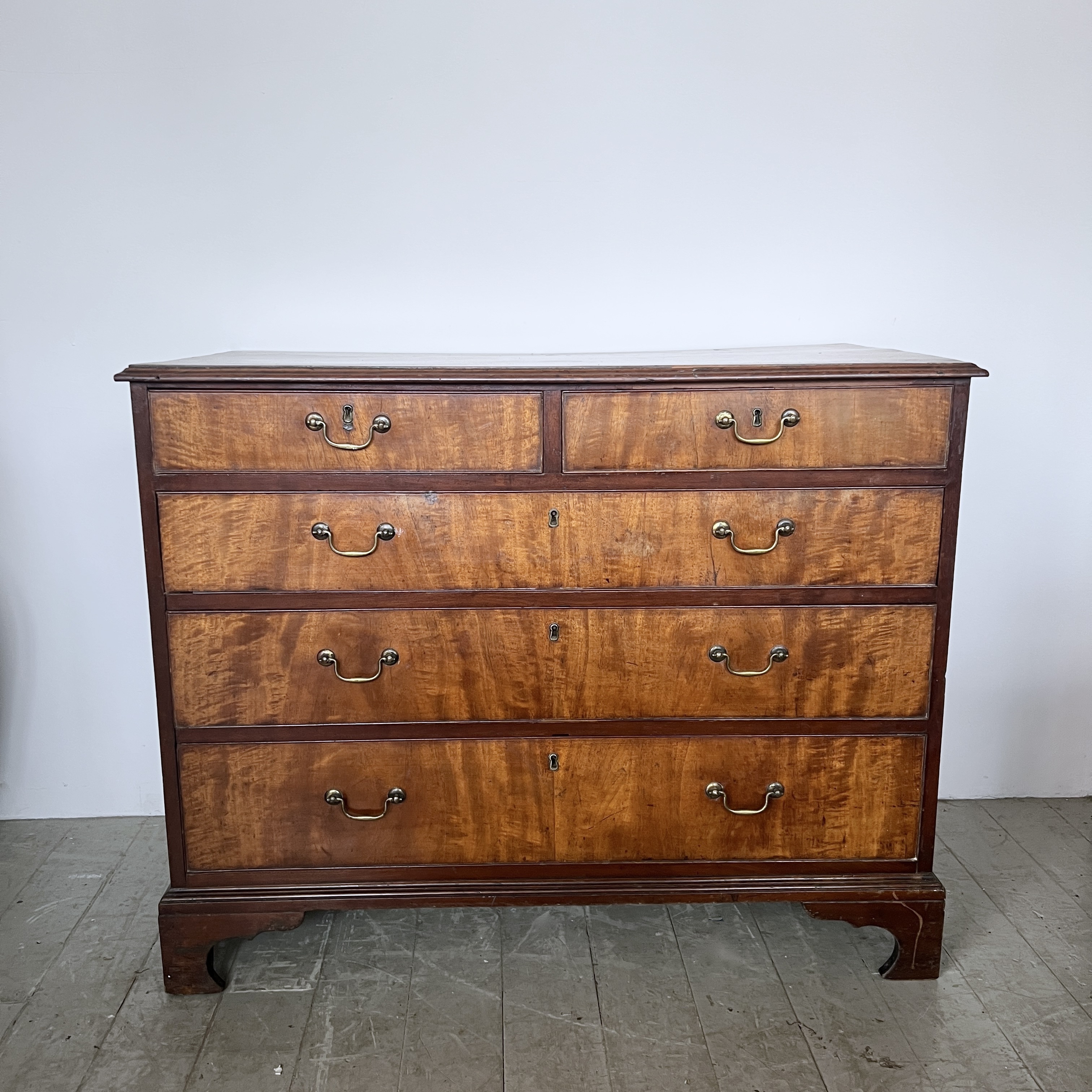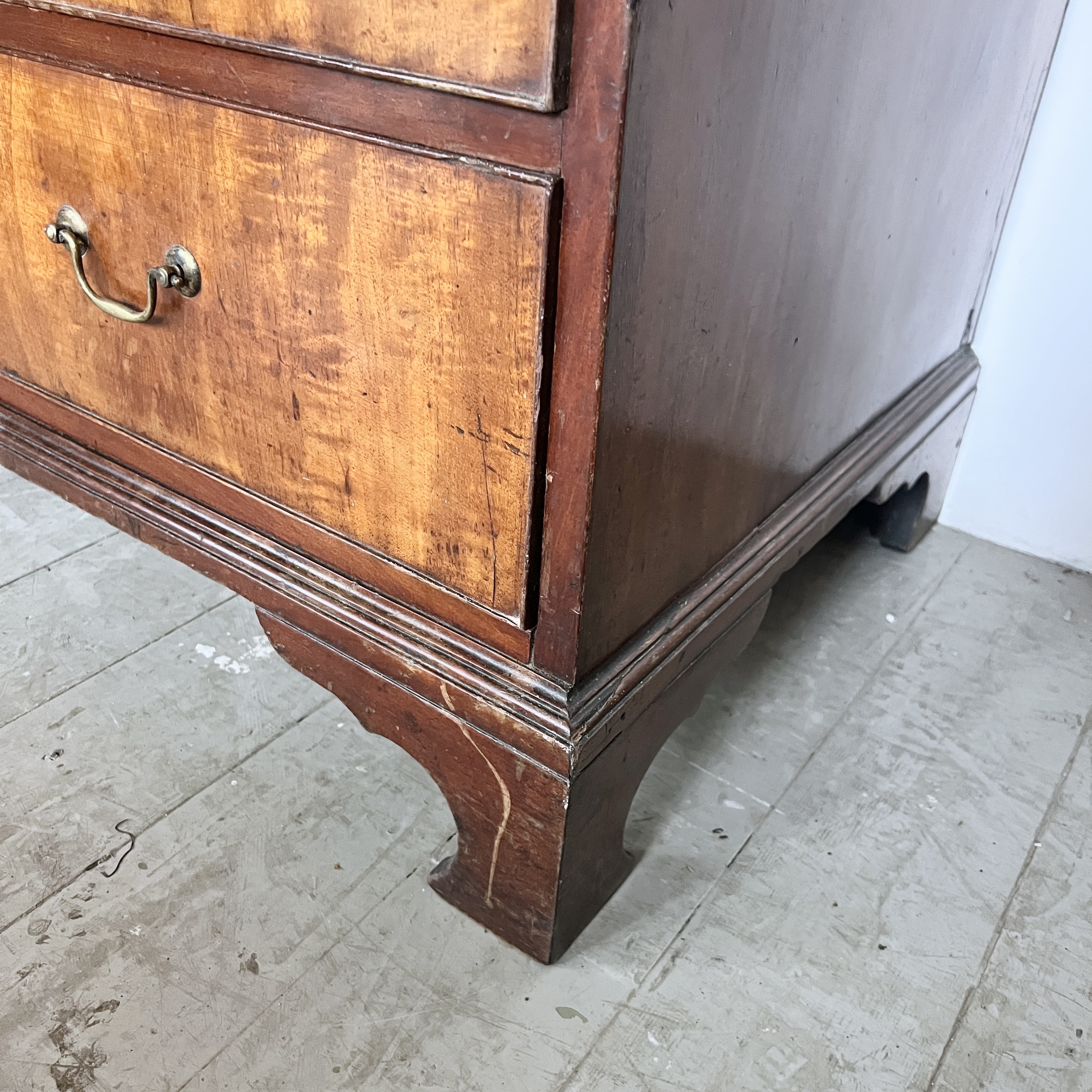 Solid mahogany chest of drawers with original brass handle pulls. Two drawers over three. Top left corner has been repaired.