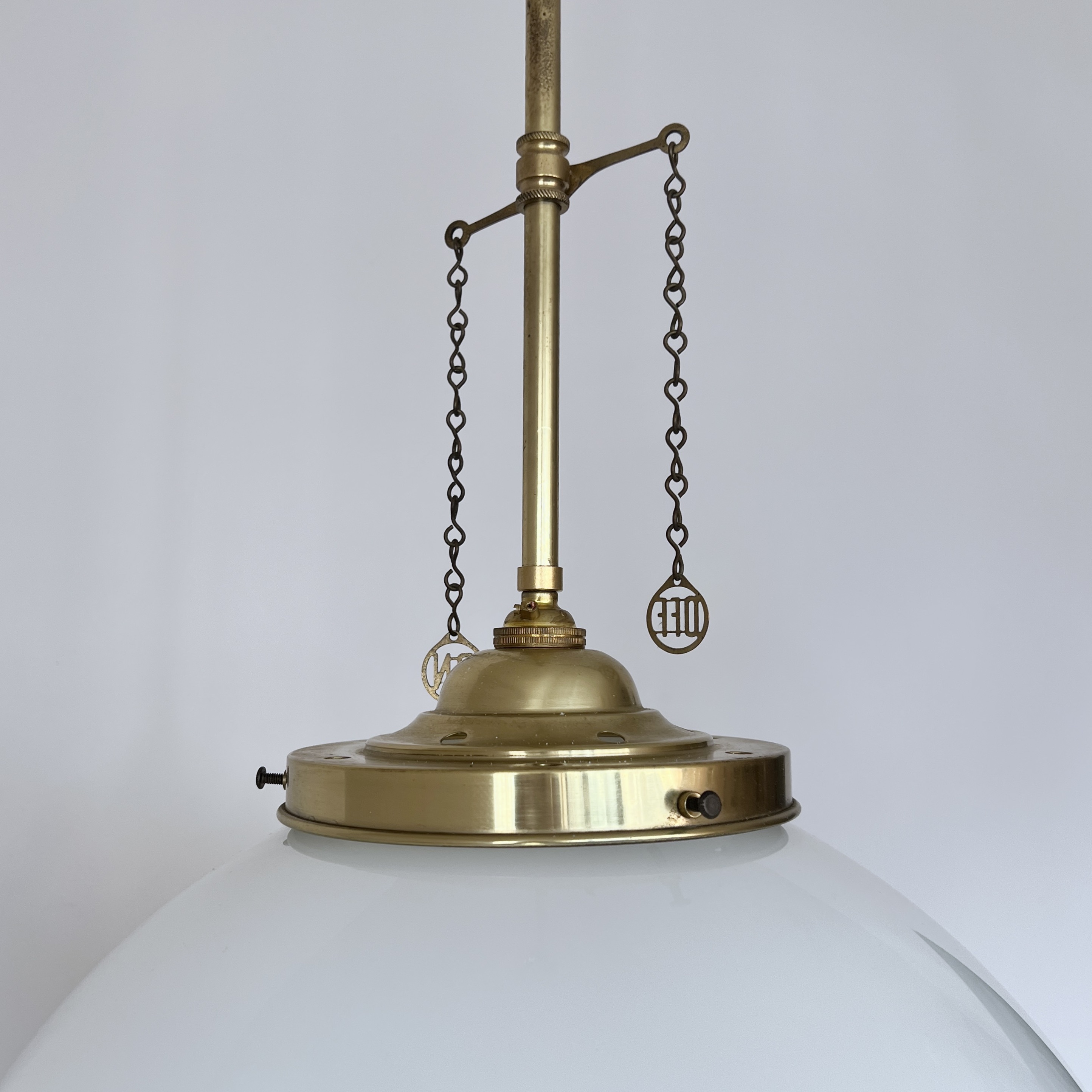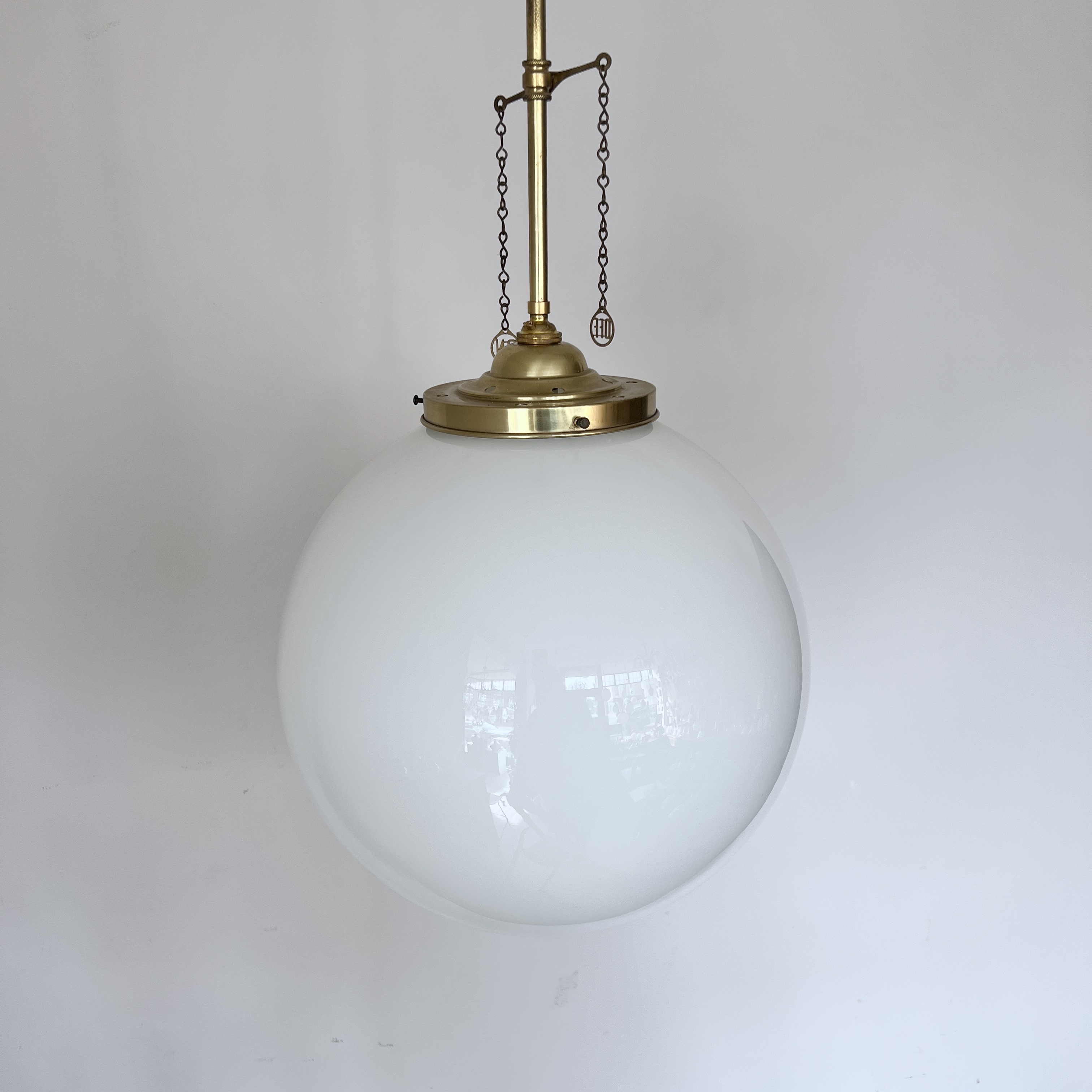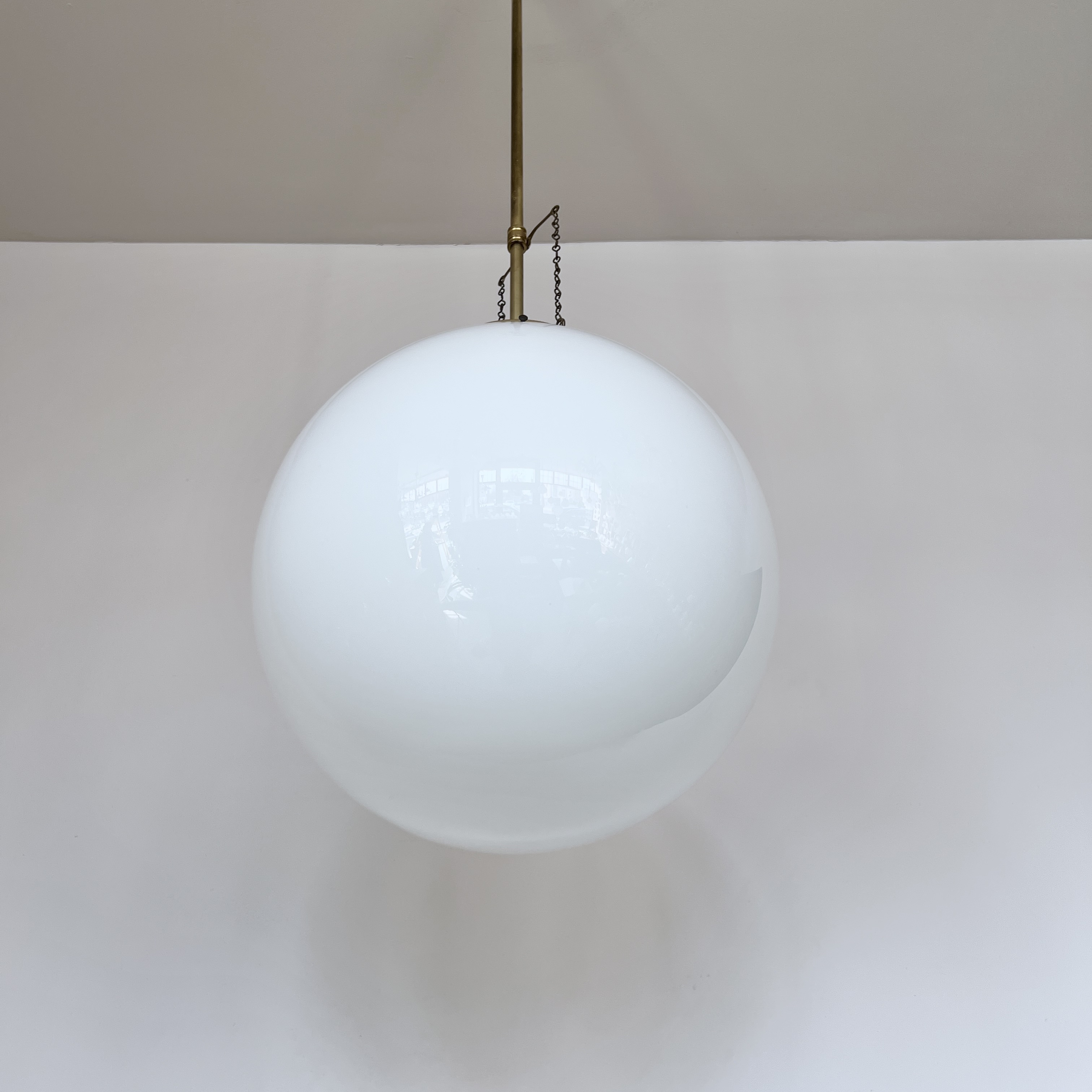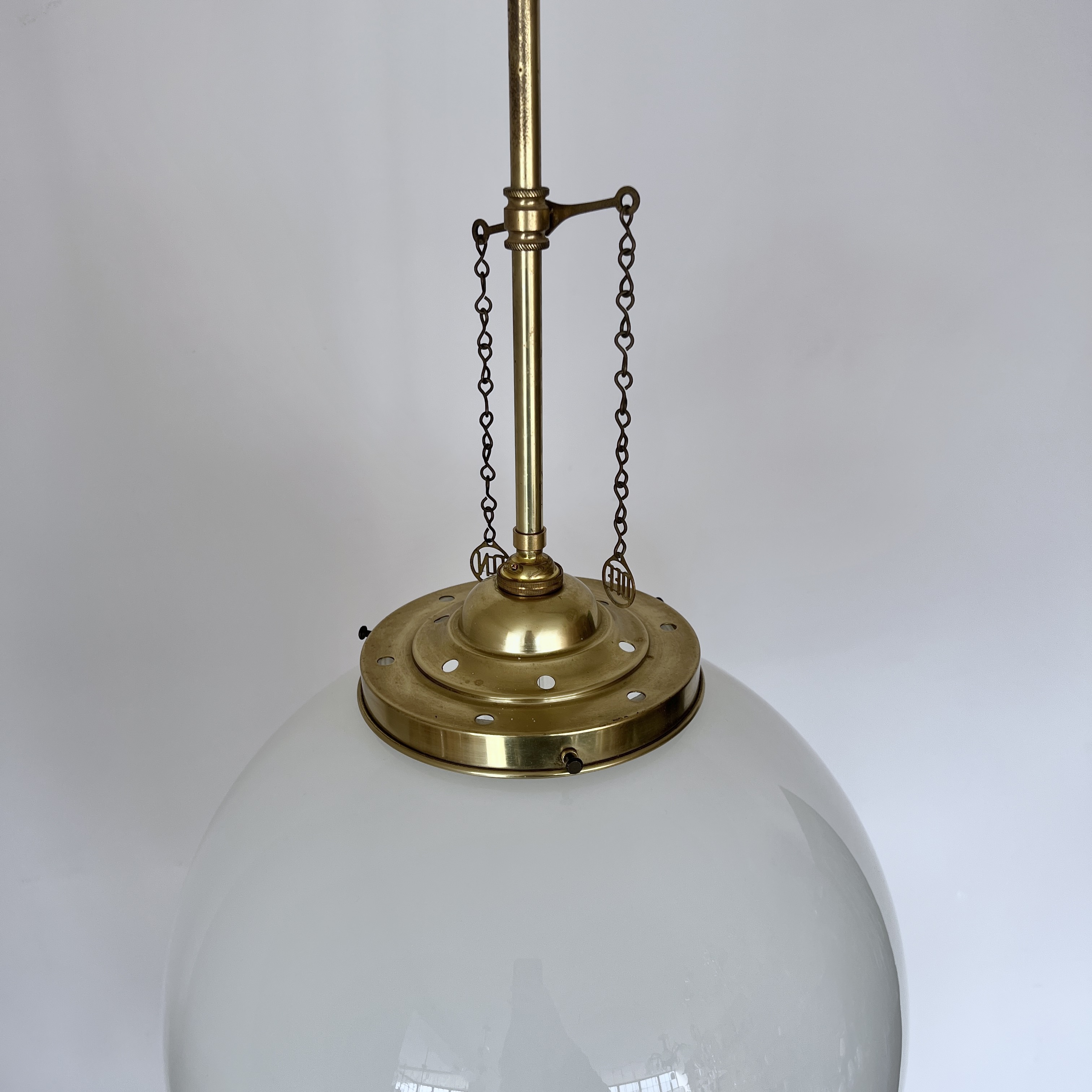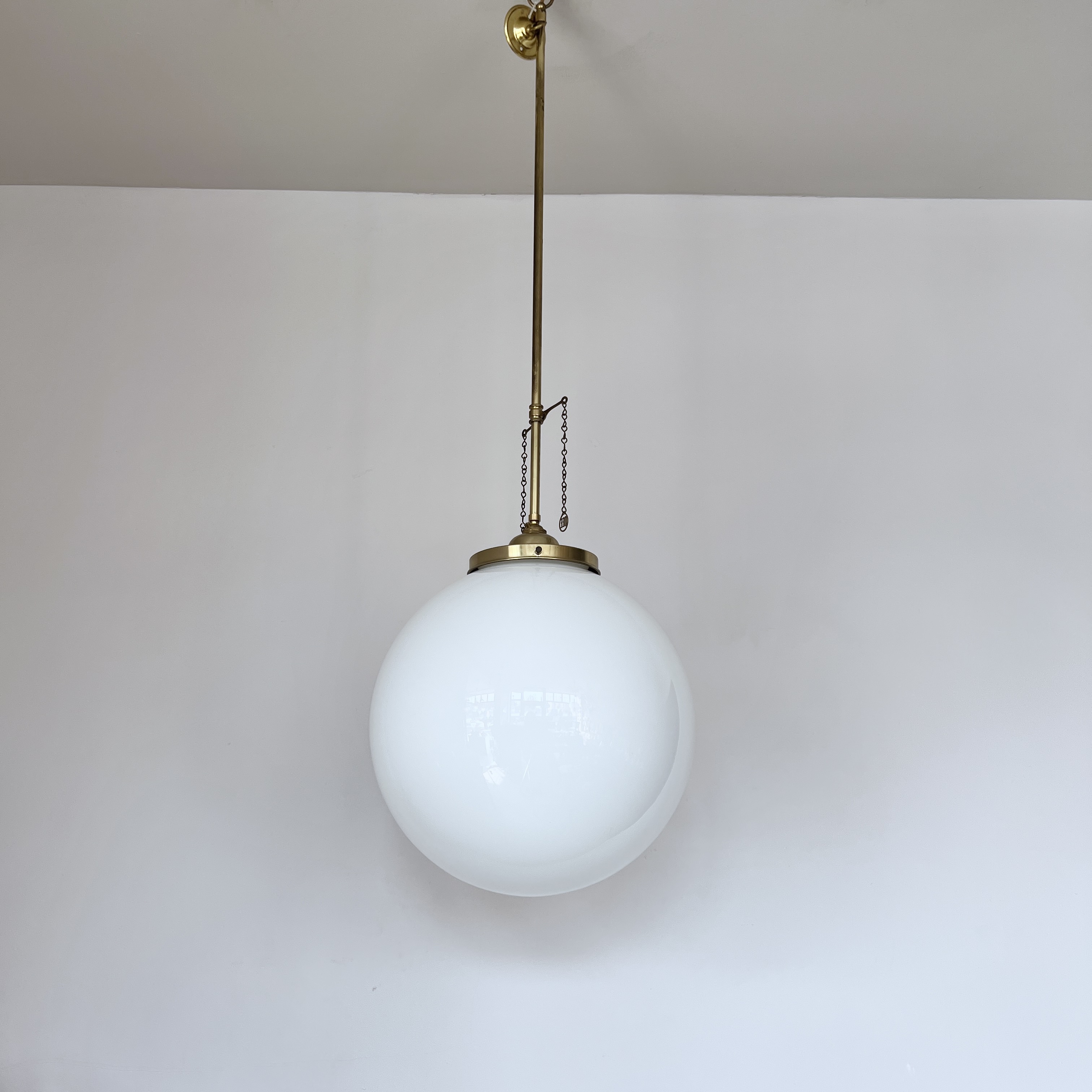 Original Art deco globe shade with brass stem. This piece fits directly to the ceiling. The central bar could be shortened if needed. The pendant requires an E27 bulb, this is not included but could be supplied.